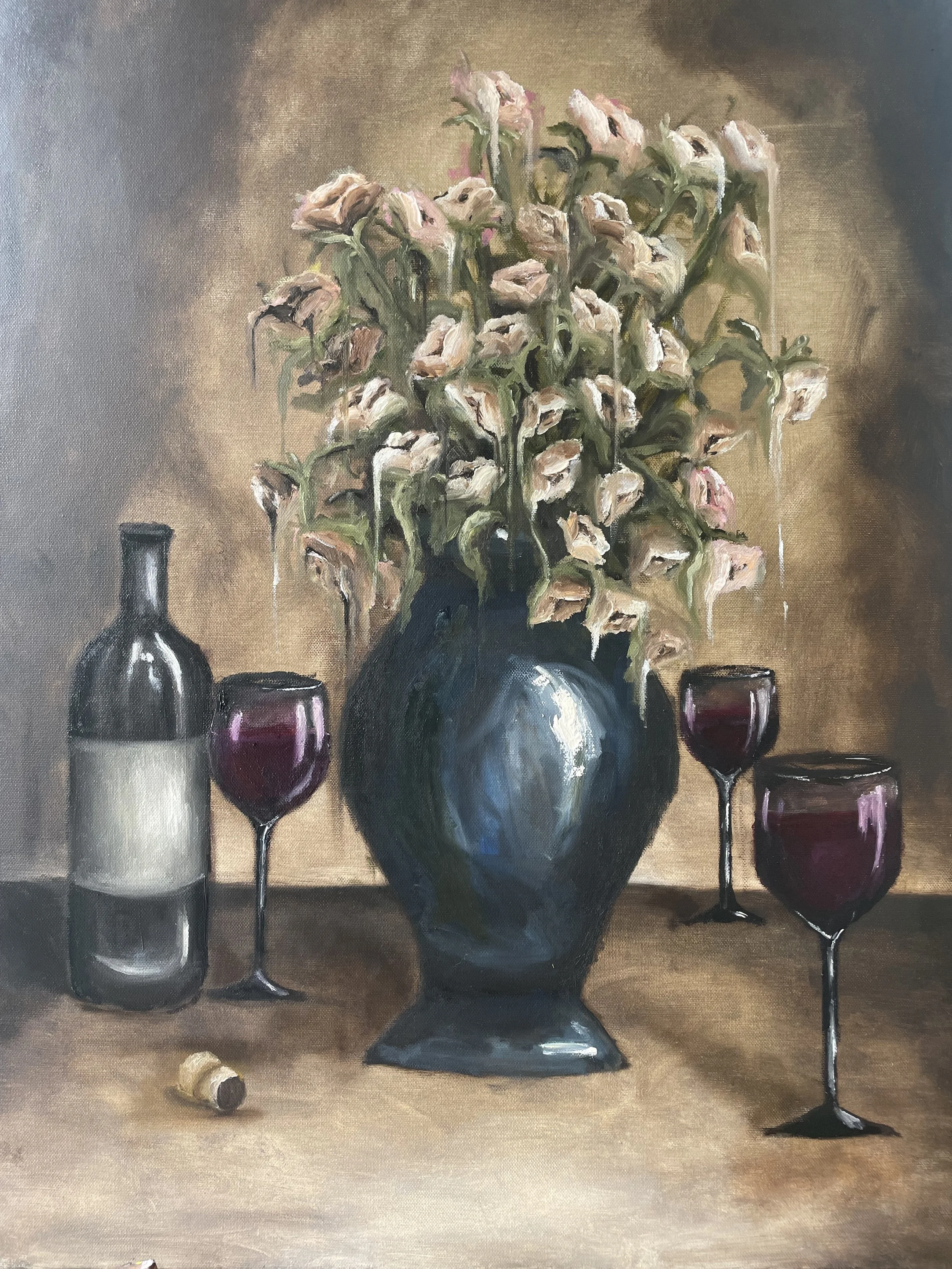 The roses in this piece represent the nourishment and growth that comes from watering our mental seeds. In hospitality, these seeds don’t often get watered enough. The roses represent the individuals blossoming, and growing because of the hard work carried out by everyone at and representing The Burnt Chef Project.